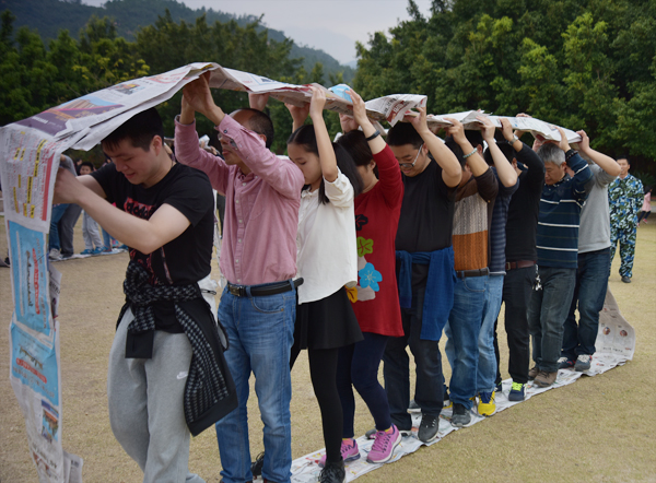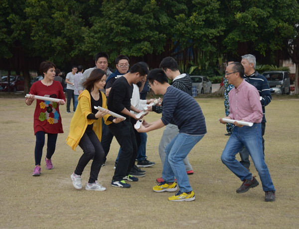 2月4日中午,公司全員順利抵達目的地。隨著熱身游戲“流水作業”的開展,本次活動的第一個項目——團體拓展正式開始。“無敵風火輪”、“螃蟹賽跑”等項目不斷將活動推向高潮,你爭我趕的氛圍讓大家在游戲中加強了團隊協作意識和集體榮譽感。最后,拓展活動在“鼓舞飛揚”中圓滿結束。
