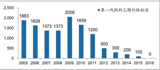 第一代燃料乙醇補(bǔ)貼標(biāo)準(zhǔn)不斷下降直至取消
