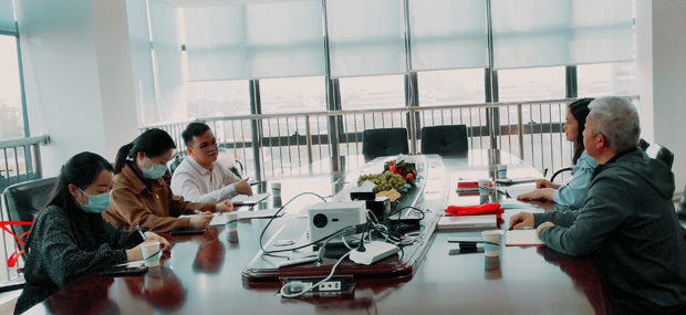 黃書記一行與我司黨支部書記楊慧靜、委員姜新春、楊華珍等人在八樓大會議室召開座談會。會上,黃書記對此次走訪工作目的做出說明:一是提醒企業(yè)要高度警惕疫情風(fēng)險,嚴(yán)抓疫情防控常態(tài)化不放松,抓嚴(yán)抓實疫情防控工作,以保證企業(yè)長期穩(wěn)定的生產(chǎn)經(jīng)營;二是聽取中科天元黨支部2020年的工作匯報及2021年度工作計劃,加強(qiáng)上級黨組織對園區(qū)企業(yè)支部的監(jiān)督指導(dǎo)工作,建立常態(tài)化的工作交流;三是要求企業(yè)在提質(zhì)增效實現(xiàn)高質(zhì)量發(fā)展的同時開展豐富多彩的活動為迎接建黨100周年獻(xiàn)禮。
