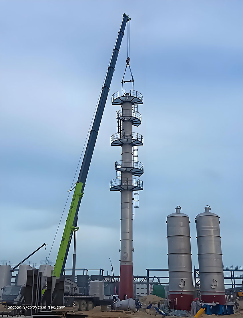 2024年7月2日,隨著起重工哨聲響起,濃縮塔順利吊裝就位,吊裝過程 “安全、平穩、有序、高效”。