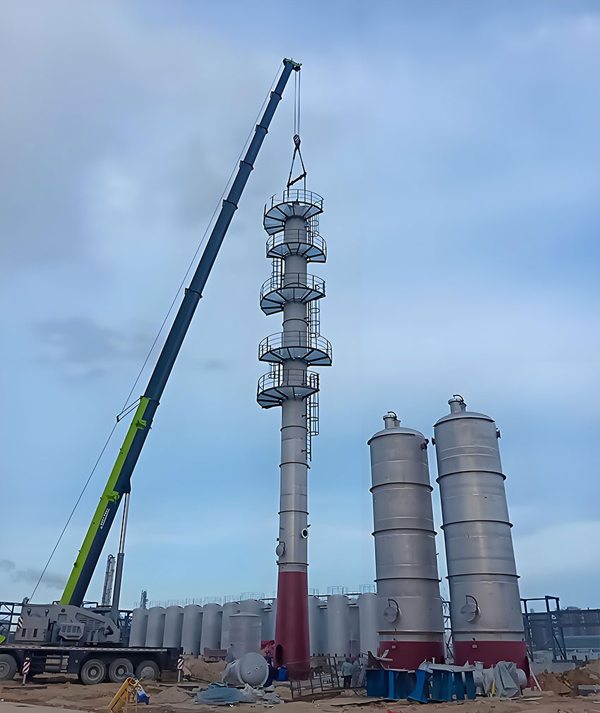 2024年7月2日,由廣東中科天元新能源科技有限公司承建的福建百宏8萬噸/年無水乙醇成套裝置建設項目中的關鍵設備——濃縮塔成功吊裝。